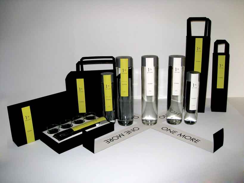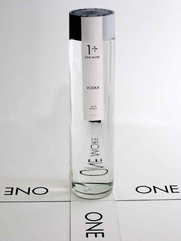 The ONE MORE vodka identity is intended for a high end client base. It takes advantage of a limited color palette, rich textures, sleek materials, and a modern minimalist approach to packaging design.