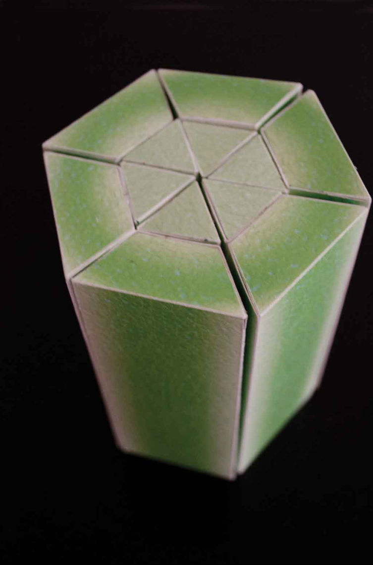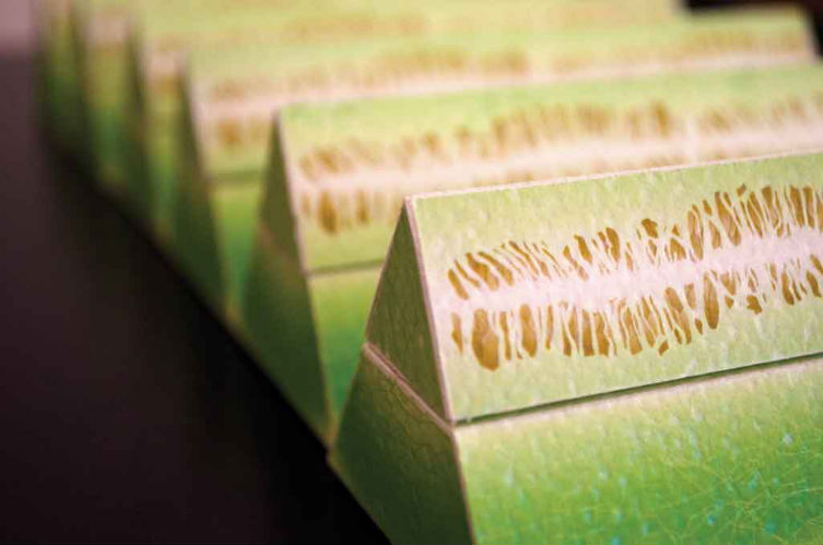 An abstract assignment to explore packaging design by creating a geometric fruit. The honeydew packaging uses a variety of specialty papers to created desired effects and demonstrates good craftmenship.